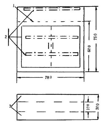 图10-2-1 比色管架 1-置比色管孔 2-玻璃 3-镜面 4-p32孔,共12孔