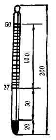 图10-2-9 茹可夫瓶 ②干燥试管:高70±3mm,内径20±2mm。 ③套管:高85±5mm,内径40±4mm。 ④温度计:分度值为0.2℃(见图10-2-10)。