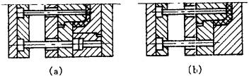 | 释义 | 复位机构 合模时为了使脱模机构准确的恢复到原始位置,模具中需设置复位装置,常用的复位形式有三种。 (1)回程杆复位 如图4-149所示。回程杆的一端固定在推杆固定板上,另一端与分型面平齐,图4-149(a)为回程杆作用面处带有淬火镶件,图4-149(b)在该处需直接淬火。