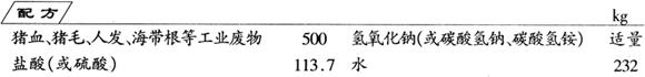 制法 将猪血、人发等废物倒入加热浓缩容器内,加入酸进行浸泡至热沸,再滴加适量的碱进行中和。当pH值调到中性时,浓缩容器中的液体,去掉水分后冷却分离除去盐类物质,再向剩余的黏稠液体中加入麦麸、米糖等,最后经烘干、粉碎处理,即得此种饲料添加剂。 本品可代替鱼粉等饲料添加剂,发展前景很好。 |