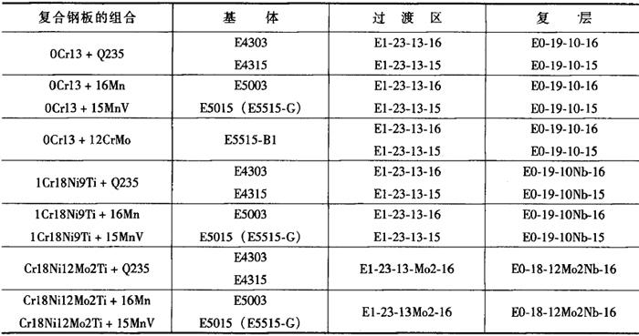 | 释义 | 复合钢板的焊接 复合钢板是由较厚的珠光体钢(基体)和较薄的不锈钢(复层)复合轧制而成的双金属板。基体多为碳钢或低合金钢,复层多为1Cr18Ni9Ti、Cr18Ni12Mo2Ti、Cr23Ni28Mo3Cu3Ti等奥氏体不锈钢,主要满足耐蚀性能要求。复层通常是在容器里层,厚度一般只占复合钢板总厚度的10%~20%[1,2]。 复合钢结构的焊接工艺: (1)先从基体一侧进行焊接; (2)基体部分焊完后,从复层一侧铲焊根并清理干净,焊接过渡层; (3)最后焊接复层的焊缝。 复合钢板的基体和复层分别选用各自适用的焊接材料进行焊接。关键是接近复层的过渡区部分,必须考虑基体的稀释作用,应选用Cr、Ni含量较高的奥氏体填充金属来焊接过渡区部分,以免出现脆硬组织。复合钢板的基体较薄时(如总厚度≤8mm),可以用奥氏体焊条或填充金属焊接复合钢的全厚度,这时更需考虑基体材料的稀释作用。较厚的复合钢板可采用U形、V形、X形或复合形坡口。为了防止第一道基层焊缝中熔入奥氏体钢,可预先将接头附近的复层金属加工掉一部分。 复合钢板焊接材料的选用见表2-3-87。表中列出了基体、复层和过渡区焊接推荐采用的焊条类型。这些焊条是根据复合钢板基体、复层的性能要求而选定的。 表2-3-87 不锈复合钢板焊接材料的选用[1]