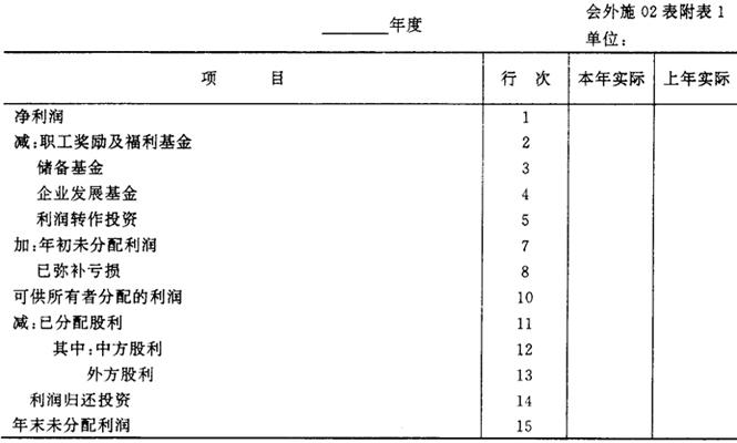 (企业名称) 利润分配表