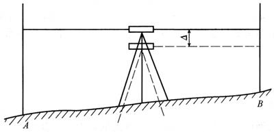 | 释义 | 外界条件影响 1.仪器下沉和水准尺下沉 (1)仪器下沉 在读取后视读数和前视读数之间若仪器下沉了△,由于前视读数减少了△从而使高差增大了△(图2-24)。在松软的土地上,每一测站都可能产生这种误差。当采用双面尺或两次仪器高法时,第二次观测可先读前视点B,然后读后视点A,即以“后前前后”的顺序读数,则可使所测高差减小,两次高差的平均值可消除一部分仪器下沉的误差。用往测和返测时,同样也可消除部分的误差。