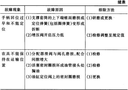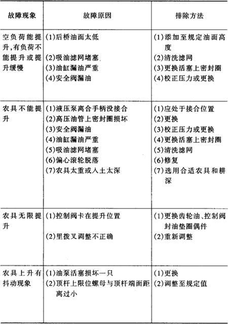 表4-11 拖拉机分置式液压悬挂系统的故障及排除