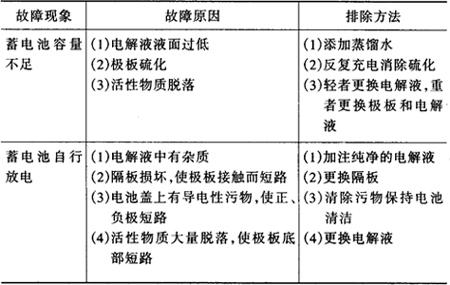 表4-12 拖拉机蓄电池常见故障及排除方法