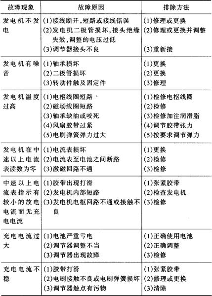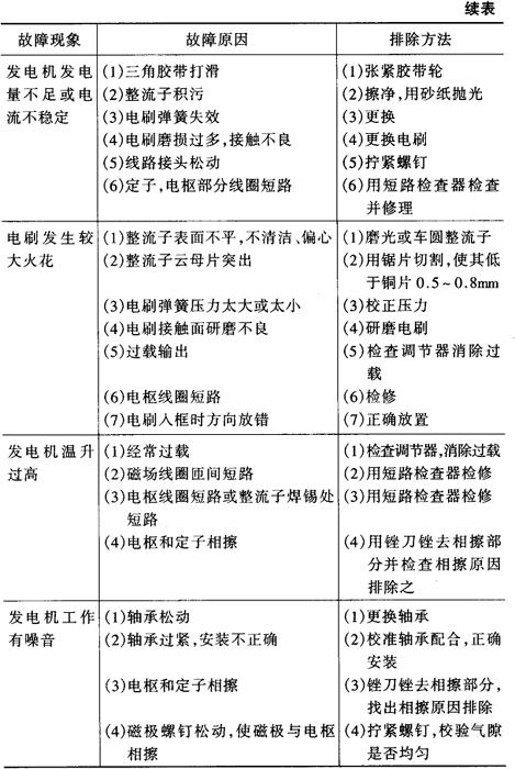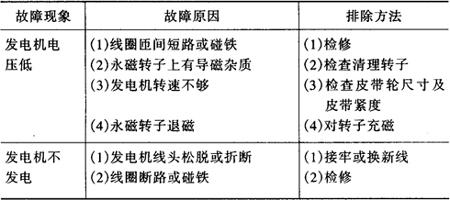表4-13 拖拉机永磁交流发电机的故障及排除方法