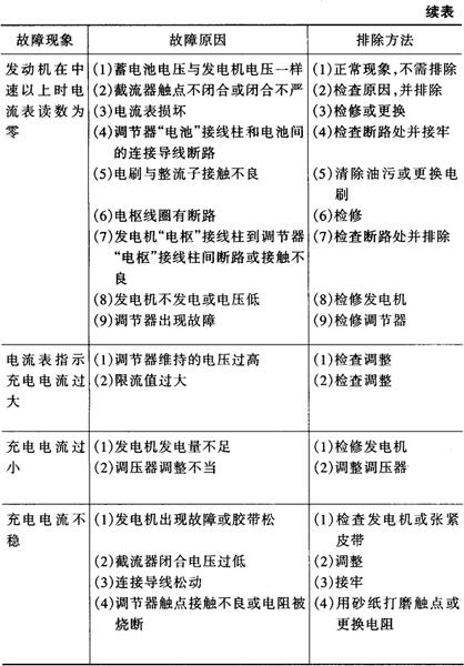 表4-14 拖拉机直流发电机及充电电路的常见故障及排除
