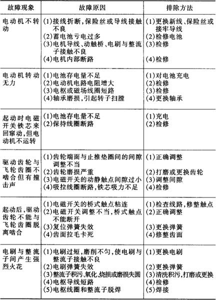 表4-16 拖拉机起动电动机常见故障及排除