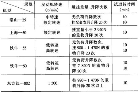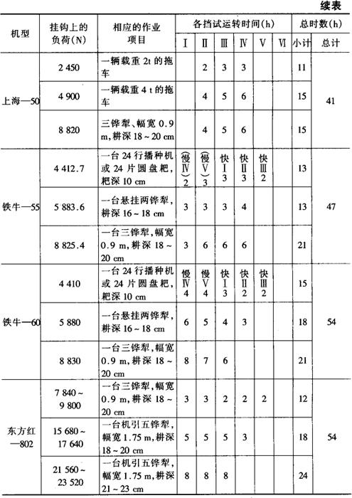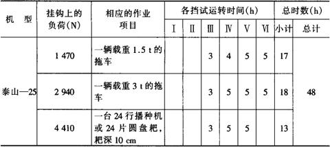 4.拖拉机的负荷试运转 几种拖拉机的负荷试运转规范见表4-7。 表4-7 几种拖拉机的负荷试运转规范