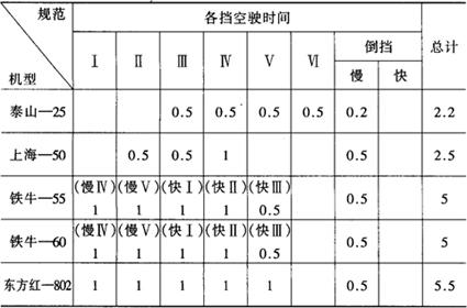 3.拖拉机的无负荷试运转(空驶磨合)规范 拖拉机的空驶磨合按表4-6所示规范进行。 表4-6 几种拖拉机无负荷试运转规范(单位:h)