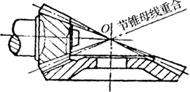 (二)中央传动的啮合副间隙及啮合印痕的检查与调整 中央传动两锥形齿轮必须处于正确的啮合位置,否则会造成噪声大、磨损快、齿面剥落、轮齿折断等现象。所谓齿轮的正确啮合,即指啮合的两圆锥齿轮的节锥母线重合,并且两齿轮节锥顶相交于一点,如图4-51所示。为了检查方便,通常用啮合印痕来表示。齿侧间隙是指相啮合的齿侧面之间的最小间隙。为保证中央传动正常工作,各机型均规定了在一定工作小时或拆出后桥轴和更换新齿轮副的情况下,要对中央传动进行检查和调整。检查的内容和方法如下: