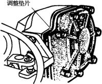 图4-56 制动踏板自由行程调整 (2)左右制动器总间隙的调整(图4-57):当左、右制动器总间隙不相同相差过大时,上述调整可能达不到要求,此时可以增减制动器盖调整垫片,待总间隙调好后再进行上述调整。