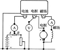 逆流切断器的触点闭合后,可将发电机转速略为提高些,电流表应指示充电,然后缓慢降低发电机转速,注意观察电流指针所指示的充电电流值,它将随转速的降低而逐渐减小至零。再降低转速,电流表指针指向放电,当电流表指针突然由放电摆回零点时,说明逆流切断器触点已分开。电流表指示的放电电流最大值即为逆流值,此值应符合表4-4中规定的数值。若不符,可调整静触点支架2(图4-68),改变触点闭合后动铁与铁心的间隙,使之符合要求。 2.电压调节器的检查与调整 接线见图4-67,把负载开关扳至B处,接通滑线电阻,起动试验台电动机,将发电机转速提高到3000r/min,调节滑线电阻,使发电机输出电流(负载电流)为10A,此时电压应符合表4-4中规定数值,如不符则可调节图4-69中弹簧3的拉力或放松螺钉1,调节支架2以改变动铁与铁心的间隙,使之达到规定值。