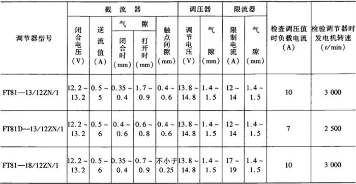 图4-68 逆流切断器的调整 1.限位钩 2.静触点支架 3.弹簧 表4-4 调节器的调整数据