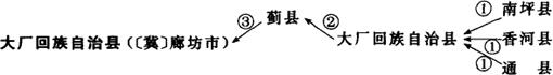 位于东经116°48′~117°04′、北纬39°49′~39°58′之间。 ①1955年2月1日,析三河县90个村、香河县6个村、通县8个村,三县地连壤地区设立大厂回族自治县。②1958年底大厂回族自治县并入蓟县。③1962年6月析蓟县,恢复大厂回族自治县。 |