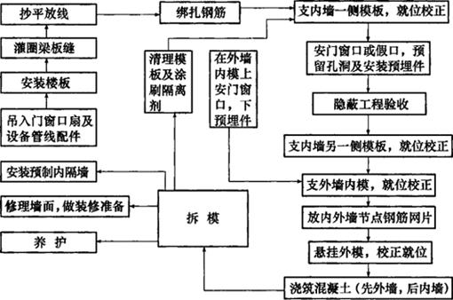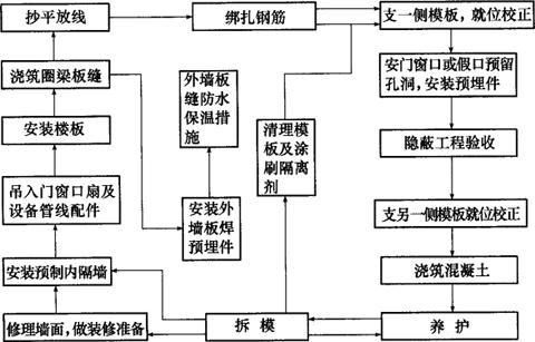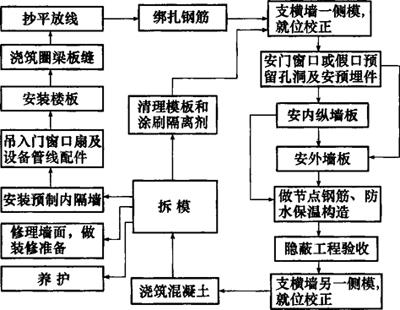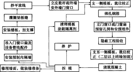 图9-21 预制非承重外墙板及内墙采用现浇的施工程序