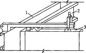 图9-19 悬挑式外模板示意图 1-外墙外模板;2-外墙内模板;3-外墙内模板 2)外承式外模板施工。当采用外承式外模板施工时,可将外墙的外模板安装在下层混凝土外面上挑出的支撑架上,如图9-20所示。支撑架可制成三角架,用L型螺栓通过下一层外墙预留孔挂在外墙上。为了保证安全,要设防护栏杆和安全网。外墙的外模板安装好后,再安装内墙模板和外墙外模板。