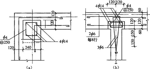 图9-30 外砌墙体的转角节点和内外墙交接节点 (a)外墙转角节点;(b)内外墙交接节点 |