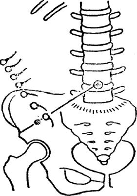 图9-27 阑尾组织结构 对阑尾有两点值得注意:一是婴儿阑尾及其开口相对宽大,易排空,故阑尾炎的发病相对较低;但由于肠壁薄,淋巴组织丰富,因此由阑尾炎引起腹膜炎以及阑尾穿孔的可能性则高得多。二是有资料显示妊娠期急性阑尾炎死亡率较高,母亲死亡率为2.0%,胎儿死亡率为20%。其主要的形态学变化为:随着孕妇子宫增大,阑尾的位置也逐月有所改变,通常是妊娠3个月后阑尾根部位于髂嵴下二横指(图9-28),5个月后达到髂嵴水平,8个月后升至骨髂嵴上二横指。而且在盲肠向上移的同时,因阑尾向反时钟方向旋转,因此在妊娠不同时期,阑尾炎的临床症状表现也不相同;再加上妊娠后期,盆腔充血,不仅感染的机会增多,而且炎症的发展也较快,阑尾穿孔坏死机会也较一般为高等等。在妊娠期,尤其妊娠后期右下腹的腹痛和触痛部位都应考虑到急性阑尾炎的可能。