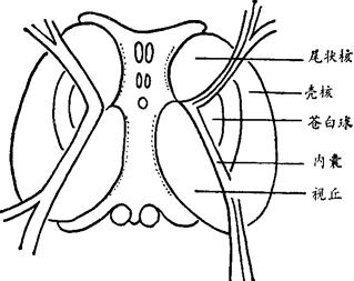 大脑基底神经节核包括尾状核、豆状核与苍白球。(图80)。