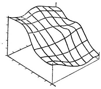 图19-4 定向和容许诱导 在定向诱导下,竞存性细胞将从状态1变成状态2。这是与竞存力改变相伴发生的,但细胞结构并无任何变化。容许诱导容许竞存性细胞表达一种分化的表型。细胞竞存力的现实状态决定着特种表型。这种分化的表型的形态表达,必须包含细胞结均变化. 那末全能性是什么?任何细胞的许可的全套生化或生理状态,可汇综成简单三向反应面,一种Waddington后生遗传图景。定向诱导沿着这种面移动。Waddington很适当地描写成沿着这种面移动的球。发育过程中顺序诱导步骤的全部连结刻画为从A点到点B的途径。这些途径有许多或可能是无限数的;有些是直线,有些是曲折的。 这类图象或是“表型固定化”现象的最好物理隐喻,发育过程对抗外力干扰的趋势。A到B的可能途径或途径片段,经过许多脊、鞍、或广阔平面,或“上坡”,将有一种高速下落。这些途径尚未很好沟通。随着时间的进展,自然选择将能保持沿着很好沟通通道的分路细胞的那些基因,而摈弃其它。 每个细胞——活体或人工培养的,是否分化,未分化或脱分化的,每任何已知时刻,具有特定的生化组分的景象;这就规定着它在反应面上的位置。外界因素如规定的化学培养基、生化变化和以某种启动推动力,使细胞走过反应表面。有些生理状态将使细胞集合;这些是反应表面上的低斑。有些生理状态使细胞陷落;这是潜井,反应表面的削壁孔,控制着自身永存、后生遗传、细胞的、生化的表型。 所有这种学说直接演变成细胞和组织培养体的实际操作。已报道了涉及培养基处方和预处理程序。细胞在反应面上启动动力的强弱和方向,是培养基成分的函数;细胞的起始点,是植株生理状态的函数。在个体细胞和由于外在培养基改变对细胞的格力推力的生化的随机变化影响下,细胞在反应面上全方位移动是可能的,除局部削壁穴或脊外,无论是空竭或置换。温度变化能在许多方式上改变反应面形状。沿着反应面自由移动是细胞全能性。 接受容许诱导信号,细胞将表达它们的现实发育潜势。这是细胞决定性。可猜想为地形图或在平面上投影的三方表面(图19-5)。某些类型细胞将决定胚胎发生,其它根发生;许多细胞的潜在发育将仅仅是“未分化”细胞的继续生长。作用于同一细胞样本的不同容许诱导信号,能实现很不同的形态改变;猜想是在前一平面上取直角的面上的三向面投影(图19-5)。这种容许诱导可能引起某些细胞变为假导管,其它成为高度液泡化的,还有其它如茎尖,这是“未分化”细胞继续生长以外的细胞变化。