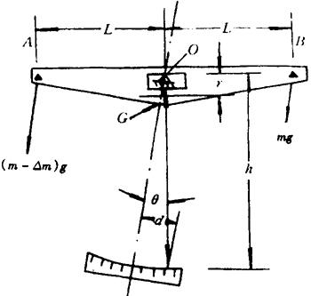 式中 L——天平的臂长; M——天平的质量; r——天平的重心G与支点O的距离(重心距); g——重力加速度。 为理解天平的测量原理,首先应讨论一下天平的灵敏度s。它是天平能够反应出两秤盘上物体质量差的能力,通常被定义为指针位移d与指针长度h的比值除以质量差Δm,即: