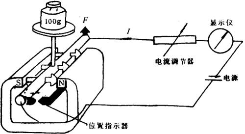 式中f——天平的固有频率。 由此可见,灵敏度愈高的天平,摆动得愈慢。这也是一个重要的结论。为了不影响衡量操作的速率,人们希望尽快地达到平衡,而又不至影响回转点的读数。这就需要在设计上进行选择,或者施加适当的阻尼,例如:空气阻尼、液体阻尼或磁场阻尼。同时,在实际应用中,对灵敏度应选得适中,因为提高灵敏度s往往以降低固有频率f为代价,这就势必影响天平的动态特性。 天平的正确度是指两臂相等的程度,可用不等臂误差表示。只要将两具物体在秤盘上互换位置,即可方便地检验出不等臂性。除制造因素、材质因素外,温度变化或两臂受热不均匀等环境因素,也可导致不等臂误差。 天平的稳定度是指天平受干扰后恢复到原平衡位置的能力。它主要取决于重心距,即重心愈低于支点,天平就愈为稳定,但灵敏度也随之下降。 天平的示值不变度是指在相同条件下,对同一物体多次衡量所得结果的一致程度。它与刀子、刀承、横梁等部件的加工、装配状况,以及环境条件的影响等均有关系。 目前的精密天平,其综合不确定度有的可达10-8~10-9量级。上述原理的等臂杠杆,有时也作为复杂计量仪器中的一个部件,用来测量其它的量。 3.机械天平和电子天平 (1) 机械天平是由机械构件组成,其载荷的补偿和平衡依靠机械原理完成的一类天平的总称。其示值可采用机械的、光学的或其它非电量的方法读得,例如骑码标尺读数或弹簧变形刻度等。机械天平的结构可以是双刀单盘、三刀双盘的杠杆式天平,也可以是借助弹簧变形的扭力天平、或者是架盘天平等。例如机械分析天平,其主要结构部件包括天平横梁、吊耳、刀口支承、制动装置、砝码拨盘机构、空气阻尼器、秤盘制动器、灵敏度螺旋、零点螺旋、刻度板、调平螺旋等。 (2) 电子天平是利用非电量-电量转换元件即称重传感器,把被称物体的质量按比例转换成电信号的一类天平的总称。根据秤量和准确度的不同,称重传感器有电阻应变式、电动线圈式和电磁力补偿式等多种。 目前(0.1~0.3)kg秤量范围的电子天平,以电磁力补偿原理居多,其工作原理如图5.2-4所示。在未加载时,来自电流调节器的电流I,使位置指示器上处于同一水平的两指针保持不动,而显示仪上的示值恰与天平的零点对应。加载后秤盘下降,这时借助于电流调节器提供更大的电流,直到产生的电磁力F补偿所加的载荷(图中100g),使位置指示器两指针重新处于同一水平为止。此时,显示仪即指示出与被称物体质量成比例的、载荷与空秤之间的电流差。