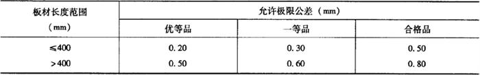 板材厚度小于或等于15mm时,同一块板材上的厚度允许极限公差为1.0mm;板材厚度大于15mm时,同一块板材上的厚度允许极限公差为2.0mm。 2.平面度允许极限公差 将直线度公差为0.1mm的钢平尺贴放在被检平面的两条对角线上,用塞尺测量尺面与板面间的间隙。若被检面对角线长度大于1000mm时,用长度1000mm的钢平尺沿对角线分段检测。以最大间隙的塞尺片读数表示板材的平面度极限公差,读数准确至0.5mm。平面度允许极限公差,应符合表15-4中的规定。 表15-4 大理石板材平面度允许极限公差 (mm)