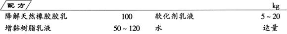 搅拌下将增黏树脂乳液和软化剂乳液慢慢加到降解天然橡胶胶乳中,加完后加适量水调至适于涂布的稠度,即得压敏胶。