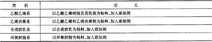 | 释义 | 天花板胶粘剂 1.产品分类 (1)类型(表9-67) 表9-67 天花板胶粘剂的类型