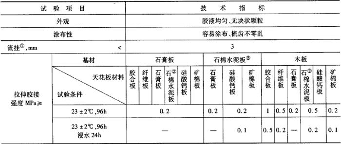 2.技术要求 天花板胶粘剂的技术要求应符合表9-69规定。 表9-69 天花板胶粘剂的技术要求