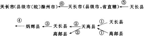 ①1912年称天长县;1937年后天长县与高邮县合并称天高县。②1945年恢复天长县、高邮县。③1949年为纪念原新四军副军长罗炳辉,天长县改名为炳辉县。④1959年复改为天长县。⑤1993年9月18日,经国务院批准,撤销天长县,设立天长市(县级市),由省直辖。⑥1995年天长市(县级市)改为由省直辖,地级市代管。