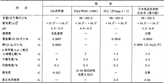 鉴别方法 1.取本品10mg加3mL水和2mL 0.1%茚三酮试液,加热3min,溶液显黑紫色。 2.取试样20mg,加甲醇5mL,将其溶解,然后加饱和盐酸甲醇溶液0.5mL,再加含35%氢氧化钾的甲醇溶液0.3mL,并在水溶液中煮沸。冷却后,用盐酸(1+3)调pH至1~1.5,加氯化铁溶液0.1mL(1+10),溶液呈深红紫色。 毒理学依据 1.LD50 小鼠口服10 000mg/kg(bw)。 2.GRAS FDA-21CFR 172.804。 3.ADI 0~40mg/kg(FAO/WHO,1994)。 4.代谢 本品进入机体内很快就分解为苯丙氨酸、天冬氨酸和甲醇,经正常途径代谢,排出体外。 使用 甜味剂、增味剂。 1.使用注意事项 ①美国、日本及欧洲一些国家允许用于麦片、口香糖、粉末饮料、碳酸饮料、碳酸果汁饮料、酸乳、腌渍物及用作餐桌甜味剂,但因其容易分解,在焙烤、油炸食品及酸性饮料中的应用受到限制。若用于需高温灭菌处理的制品,应控制加热时间不超过30s。 ②本品在pH4.2左右最稳定。 ③与甜蜜素或糖精混合使用有协同增效作用。 ④对酸性水果香味有增强作用。 2.使用范围及使用量 ①我国《食品添加剂使用卫生标准》(GB 2760-1996)规定:可按正常生产需要用于适量各类食品中(罐头食品除外)。添加本品之食品应标明“苯丙酮尿症患者不宜使用”。 ②FAO/WHO(1984)规定:可用于甜食,用量0.3%;胶姆糖1%;饮料0.1%;早餐谷物0.5%;配制适用于糖尿病、高血压、肥胖症、心血管症的低糖、低热量的保健食品,用量视需要而定。 |