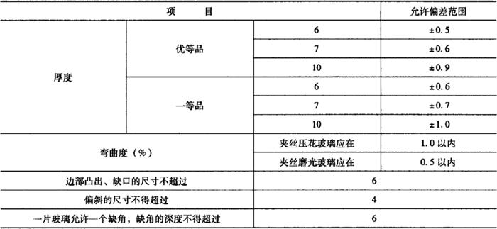 表17-19 夹丝玻璃的尺寸允许偏差 (mm)