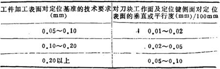 5)对刀块工作面、定位表面和定位键侧面间的技术要求(表14-36) 表14-36 工作表面技术要求