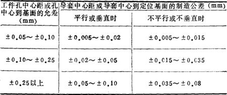 6)导套中心距或导套中心到定位基面间的制造公差(见表14-37) 表14-37 导套中心距到定位基面间的公差