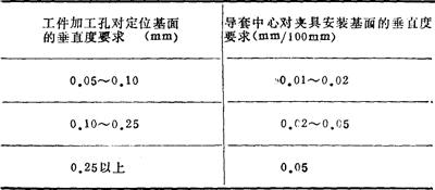 7)导套中心对夹具安装基面的相互位置要求(表14-38) 表14-38 导套中心对安装基面的要求