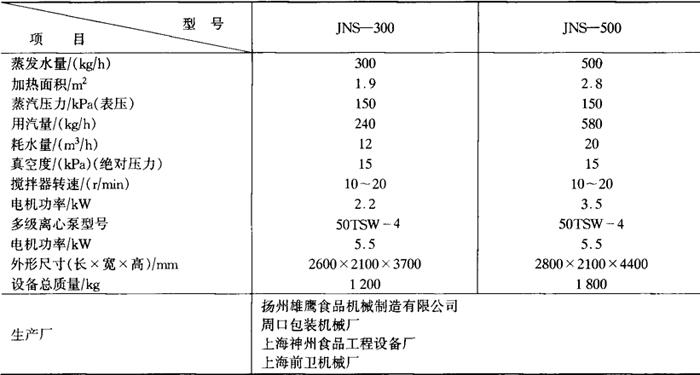 表4-8-2 夹套式搅拌真空浓缩锅主要技术参数