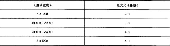 一边长度超过2400mm的制品、多层制品、原片玻璃总厚度超过24mm的制品、使用钢化玻璃作原片玻璃的制品及其他特殊形状的制品,其尺寸允许偏差由供需双方商定。 2)叠差 夹层玻璃最大叠差应符合表6-11的规定。 表6-11 夹层玻璃最大允许叠差mm