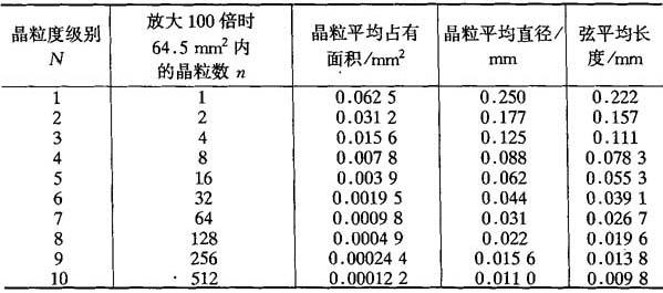 | 释义 | 奥氏体晶粒的长大 12.3.4.1 晶粒度 奥氏体晶粒度及其均匀性是衡量钢件力学性能与工艺性能的重要指标,也是分析服役零件破断失效的主要参考数据,应该加以控制.晶粒的平均直径和金相组织中单位面积内奥氏体晶粒个数都可以用来衡量奥氏体晶粒大小.现一般统一将不同晶粒尺寸换算成晶粒度级别,换算公式为: n=2N—1 式中 N——晶粒度级别; n——放大100倍时64.5mm2(1in2)内的晶粒数目. 一般将N小于4级的晶粒称为粗大晶粒,6~8级的晶粒称为细晶粒,超过8级的晶粒称为超细晶粒.表12-17为晶粒度与其尺寸的关系对照. 表12-17 晶粒度与晶粒尺寸对照表