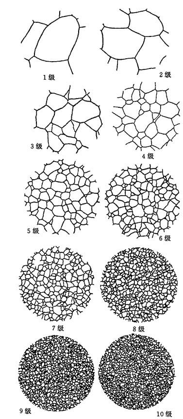 不同晶粒度级别下晶粒大小标准片如图12-19所示.