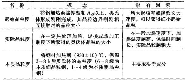 图12-19 奥氏体晶粒度级别 奥氏体形成后,在继续加热过程中奥氏体晶粒的大小是要发生变化的,奥氏体晶粒度的有关概念也有三种(如表12-18所示),必须加以区别. 表12-18 晶粒度概念及其影响因素