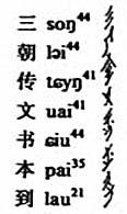 女书作品《三朝传文书本到》首句音释 |
