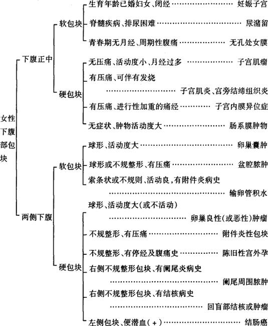女性下腹部包块是妇科四大症状之一。根据部位不同分为下腹正中及两侧下腹包块;就质地而论又分为软、硬包块。