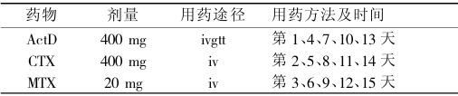 表4-8 绒毛膜上皮癌Ⅳ期5-FU+ACTD+AT-1258+VCR方案