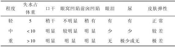 | 释义 | 婴儿腹泻 腹泻是3岁内小儿的常见临床症状。多由于饮食不当和肠道内或肠道外感染引起。肠道内感染以致病性大肠杆菌及轮状病毒为多见。近年来对感染性腹泻的发病机制研究有较大进展,大致分为两种:一种认为通过产生肠毒素引起腹泻;另一种则认为病原体直接侵袭肠黏膜引起广泛炎症和病变而产生腹泻。人工喂养儿较母乳喂养者较多发病,其原因除畜乳容易污染外,还与母乳含有泌型IgA以及一种能促进双歧杆菌生长的黏多糖有关,双歧杆能抑制大肠杆菌的生长。 【诊断】 1.轻型腹泻 多数由饮食不当或肠道外感染引起,少数亦可因致病性大肠杆菌或肠道病毒感染所致。 (1)临床症状较轻,每日腹泻次数多在10次以下,大便黄色或带绿色,水分不多,偶有呕吐。 (2)患儿精神较好,无明显脱水及电解质紊乱症状。 (3)大便镜检仅有少量白细胞及脂肪球。 (4)注意检查肠道外感染的病灶,如中耳炎等。 2.重型腹泻 为致病性大肠杆菌或病毒感染引起,也可由轻型腹泻转化、部分与患儿营养不良有关。 (1)腹泻、呕吐 较严重,每日排便一般在20次左右,亦有超过40~50次以上者。大便常是水状或蛋花汤状,含水分可达数十毫升,急骤冲出,无里急后重。呕吐较频,每日可在10次以上。 (2)脱水及电解质紊乱症状 因腹泻与呕吐导致液体丢失及摄入不足引起。 1)脱水 脱水临床表现与脱水程度有关。一般将脱水分为Ⅲ度,按同时丧失的钠和水的比例,脱水又分为等张、高张与低张,临床所见多为等张性脱水。脱水的临床分度见下表。 表3-1 脱水的临床分度