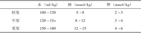 2)酸中毒 唇周灰暗,呼吸深快(6个月以下的婴儿,呼吸改变可不明显)等。 3)低血钾 肌张力减低,心音低钝,腹胀,肠鸣音减少或消失,膝反射迟钝或消失,可有心电图改变。见于营养不良的慢性腹泻,或急性腹泻脱水纠正后。 3.致病性大肠杆菌肠炎及病毒引起的肠炎的特点 前者潜伏期约2~12d,多数起病较缓,少数起病时即有高热及明显中毒症状。由于细菌致病方式的不同,大便性状可为蛋花汤样或腐肉状。大便检查每高倍视野白细胞往往在10个以下,可有少量黏液。大便培养可得病原菌。 近年来,从婴儿腹泻患者中分离出一种特殊的肠道病毒,依据其形态称为轮状病毒,大多在秋季(8、9、10月份)致病流行,故称之为秋季腹泻。本病潜伏期短,常伴有呼吸道症状,发病同时常有发热和呕吐,大便为蛋花汤样或水样便,病程较短。但也可呈暴发,迅速发展到脱水、衰竭甚至死亡。 4.长期腹泻 可导致营养不良及多种维生素缺乏症,且易有尿路感染、鹅口疮等并发症。 【处理要点】 1.轻型腹泻的治疗 (1)治疗肠道外感染病灶。 (2)调节饮食,有呕吐频繁者可先禁食数小时,然后先喂米汤,再用脱脂奶,逐渐恢复正常喂养。如有母乳最好。 (3)对症处理,一般选用助消化及收敛等药物,如胃蛋白酶、多酶片、鞣酸蛋白、乳酶生等。 (4)口服补液,少量多次。 1)家庭简易配方:糖4g,食盐 0.7g,碳酸氢钠 0.5g,氯化钾0.3g,水200ml。 2)WHO推荐的 ORS配方:氯化钠3.5g,氯化钾1.5g,碳酸氢钠2.5g,葡萄糖20g,加水至1000ml。 2.重型腹泻的治疗 (1)饮食疗法 吐泻严重者禁食(一般6~12h),待脱水基本纠正,吐泻好转时逐渐恢复饮食。可从糖水、米汤开始,然后母奶或稀释的脱脂牛奶,随病情好转逐步过渡到正常饮食。 (2)控制感染 致病性大肠杆菌肠炎,首选新霉素,每日50~100mg/kg,分次口服,连续5d,强调大量短程,以免抑制正常肠道菌群。近年来有抗药菌株出现,无效时可选用以下药物:痢特灵每日10mg/kg;抗敌素,每日5万~10万 IU/kg;庆大霉素,每日1万 IU/kg;多黏菌素B,每日510万 IU/kg;磺胺增效剂(TMP),每日5~10mg/kg,加磺胺甲基异"唑(SMZ)每日50mg/kg;吡哌酸(PPA),每日30~50mg/kg,一日量分次口服,疗程5~7d。散居婴儿带菌者可不必治疗,集体机构的带菌患儿须强调隔离。 (3)液体疗法 等张性脱水可如下处理 1)溶液 用比例约为1∶1的不含钠与含钠溶液,可因地制宜地用不同制品配成,不同程度脱水补充液量和电解质量参考表3-2 表3-2 不同程度脱水补充液量和电解质量