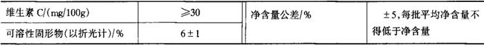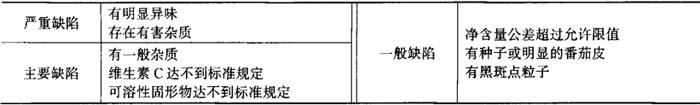 | 释义 | 婴幼儿辅助食品 番茄汁(摘自GB10780) 本标准参照采用FAO/WHO食品法规委员会(CAC)CODEX STAN73-1981《婴幼儿食品罐头标准》。 (一)主题内容与适用范围 本标准规定了番茄汁的技术要求、检验方法、检验规则和产品的标志、包装、运输、贮存要求。 本标准适用于以番茄为原料,经打浆,去除皮和种子后的原汁,加少量白砂糖(或葡萄糖)和维生素C制成适于婴幼儿食用的番茄汁。 (二)术语 1.婴儿 指年龄在12个月以内的小儿。 2.幼儿 指年龄在1~3周岁的小儿。 (三)技术要求 1.原料要求 见附录A(补充件)。 附录A 原料要求 (补充件) A1 番茄 采用新鲜或冷藏良好、未受农业病虫害的鲜红番茄,不得使用带绿或霉烂番茄,可溶性固形物不小于5%。 A2 白砂糖 洁白干燥,有光泽,纯度99.5%以上,其他理化指标按GB317《白砂糖》中一级品规定。 A3 葡萄糖 无色结晶或白色结晶性或颗粒性粉末;无臭,味甜,其他理化指标按《中华人民共和国药典》中“葡萄糖”的规定。 A4 维生素C(L-抗坏血酸) L-2,3,5,6-四羟基-2-己烯酸-γ-丙酯,白色结晶或结晶性粉末,无臭,味酸,含C6H8O6不得少于99%。 2.感官要求 应符合表5-2-24规定。 表5-2-24