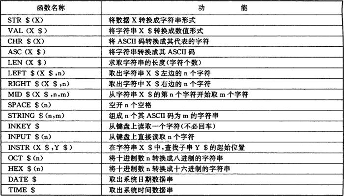常用的BASIC字符串函数表: