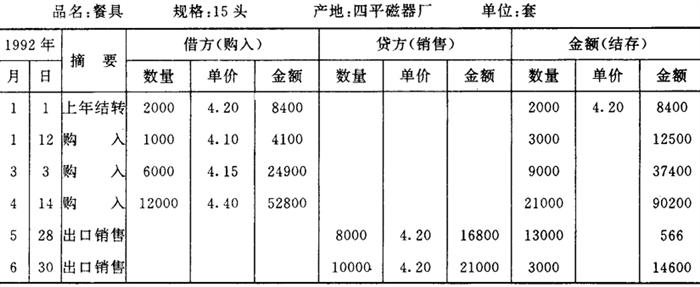 按以下帐面反映6月30日库存餐具如平均单价计算14600元÷3000个)应为每套4.87元。但以下餐具销售单价是按上年未单价每套4.20元计算的。分析单价高低情况如下: ①一次加权平均单价=(上期结存金额是8400元+本期收购金额81800元)÷(上期结存数量2000套+本期收购数量190套)=4.30元 ②本期结存数量3000×一次加权平均单价4.30=12900元